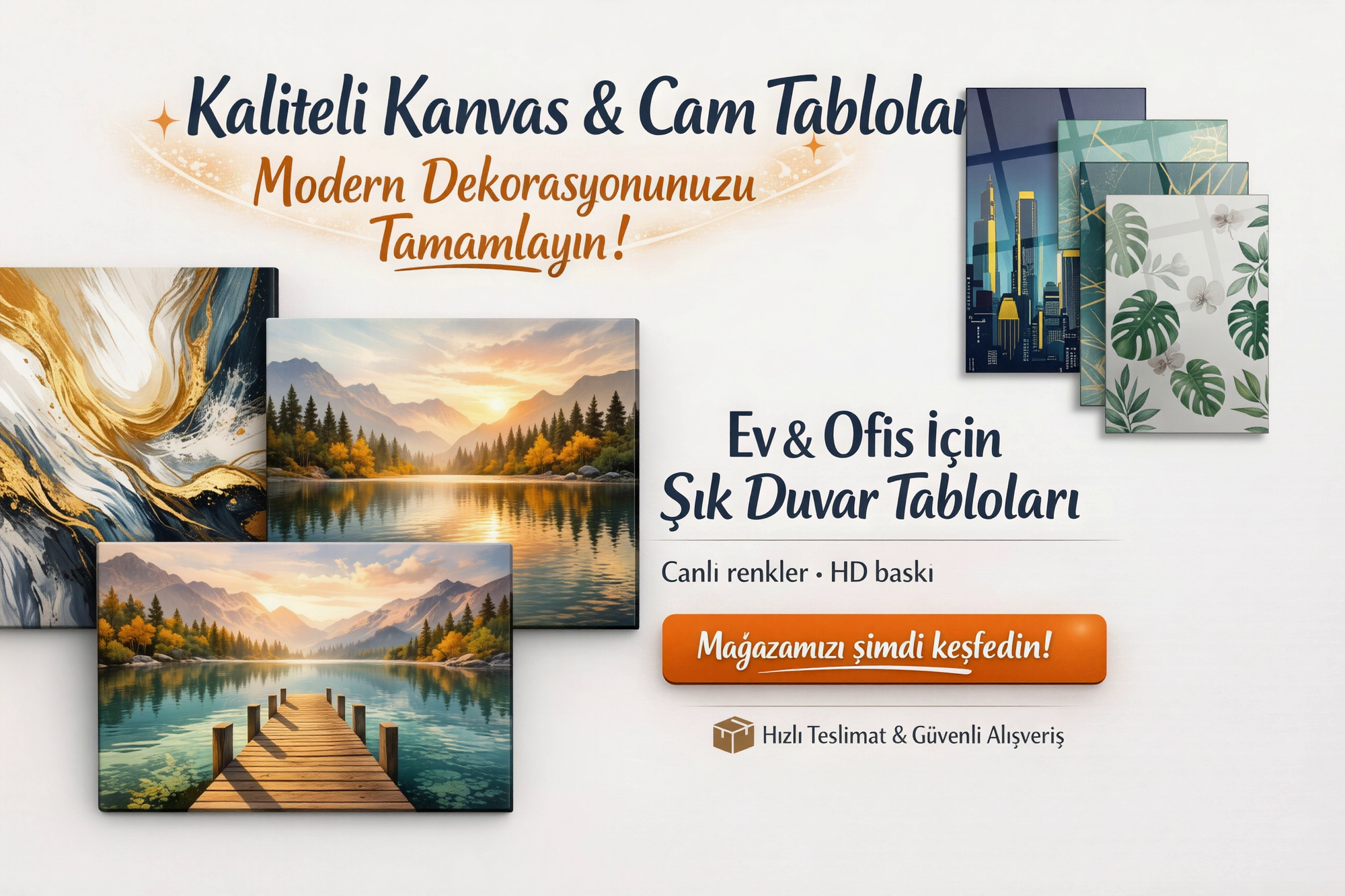 Çerçeveli Yatay Cam Tablo Salon Duvar Tablosu Yatay Cam 5At Yeni Ev Hediyesi Ofis Tablosu