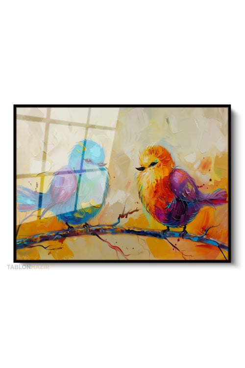 Dikey Çerçeveli Cam Stilkuş Modern Ev Dekoru Duvar Sanatı Ev Ofis Tablosu -